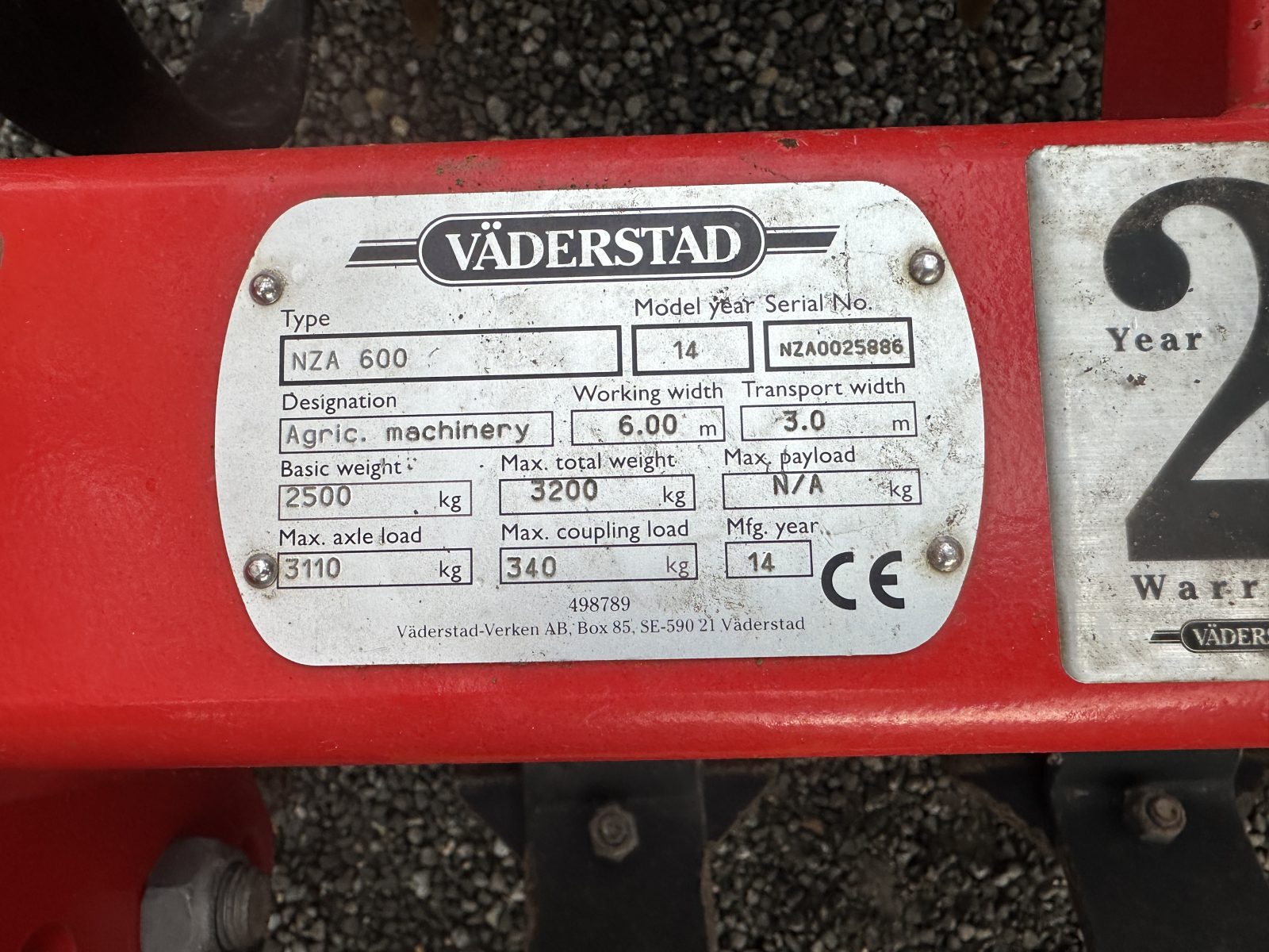 | Make / Model | Vaderstad NZA 600 AGGRESSIVE |